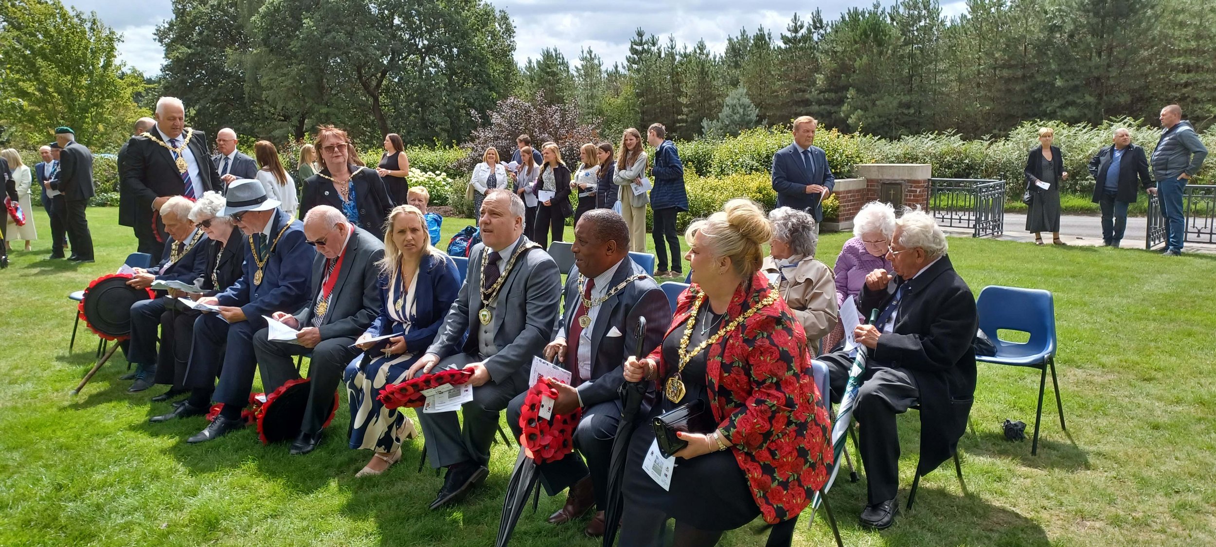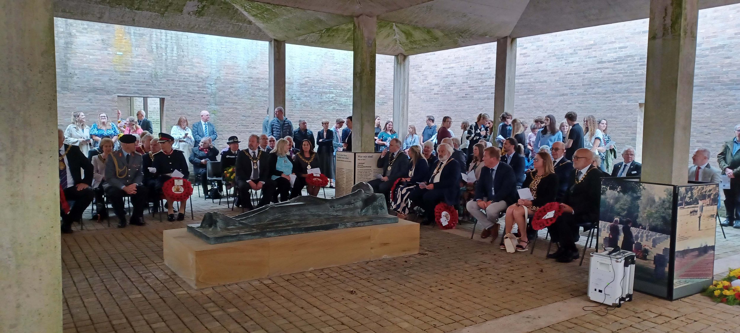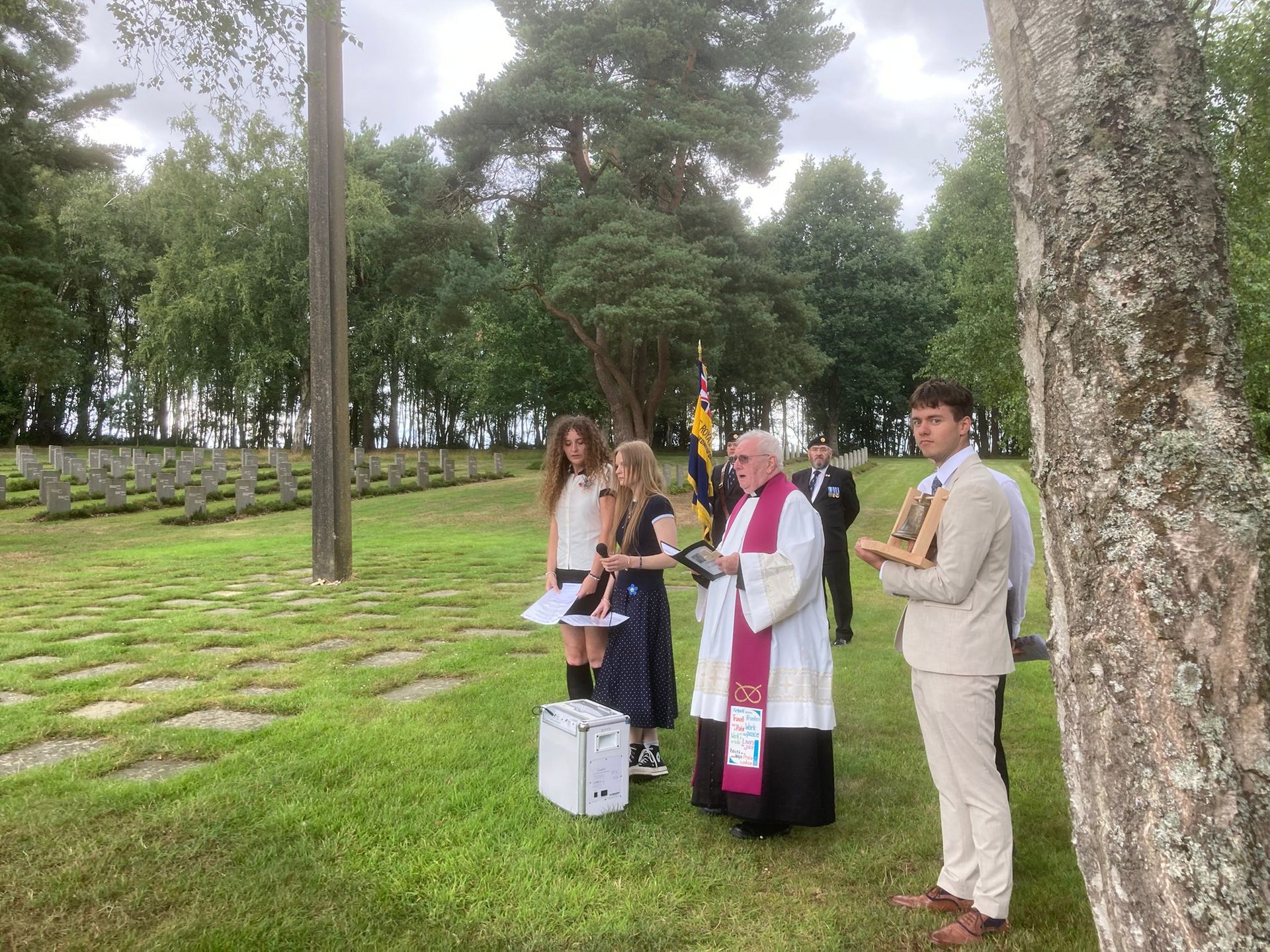 Elfriede Pauli hatte die Friedensglocke selbstverständlich mit nach Cannock Chase gebracht und so wurde diese im Rahmen der Kranzniederlegungen zum Klingen gebracht.